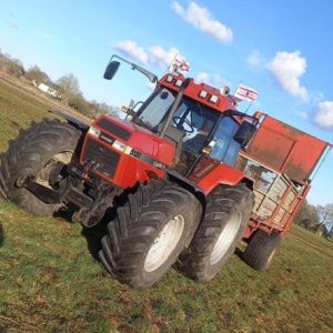Vaste mest aan het rijden op verschillende percelen in Roderwolde. De mest werd geladen door middel van een mestgrijper voor op de kraan.